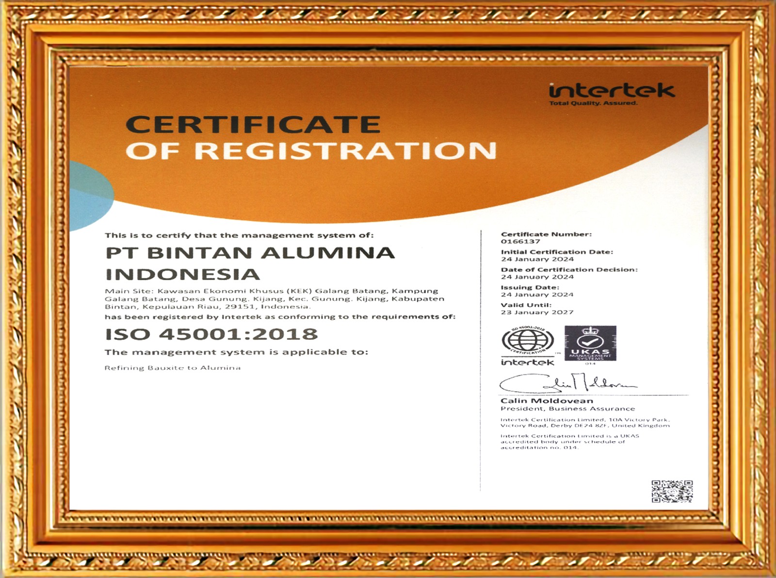 ISO质量及职业健康安全管理体系认证证书