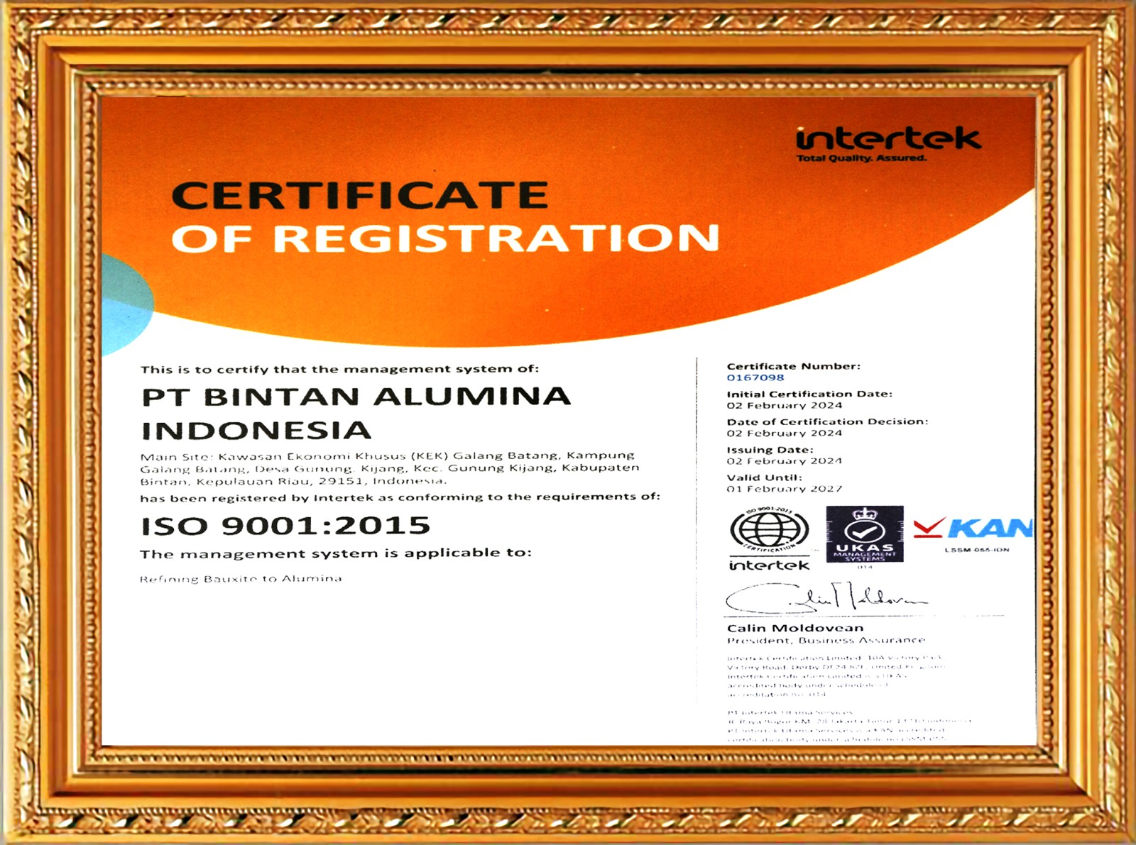 Sertifikat ISO sistem manajemen mutu dan kesehatan keselamatan kerja